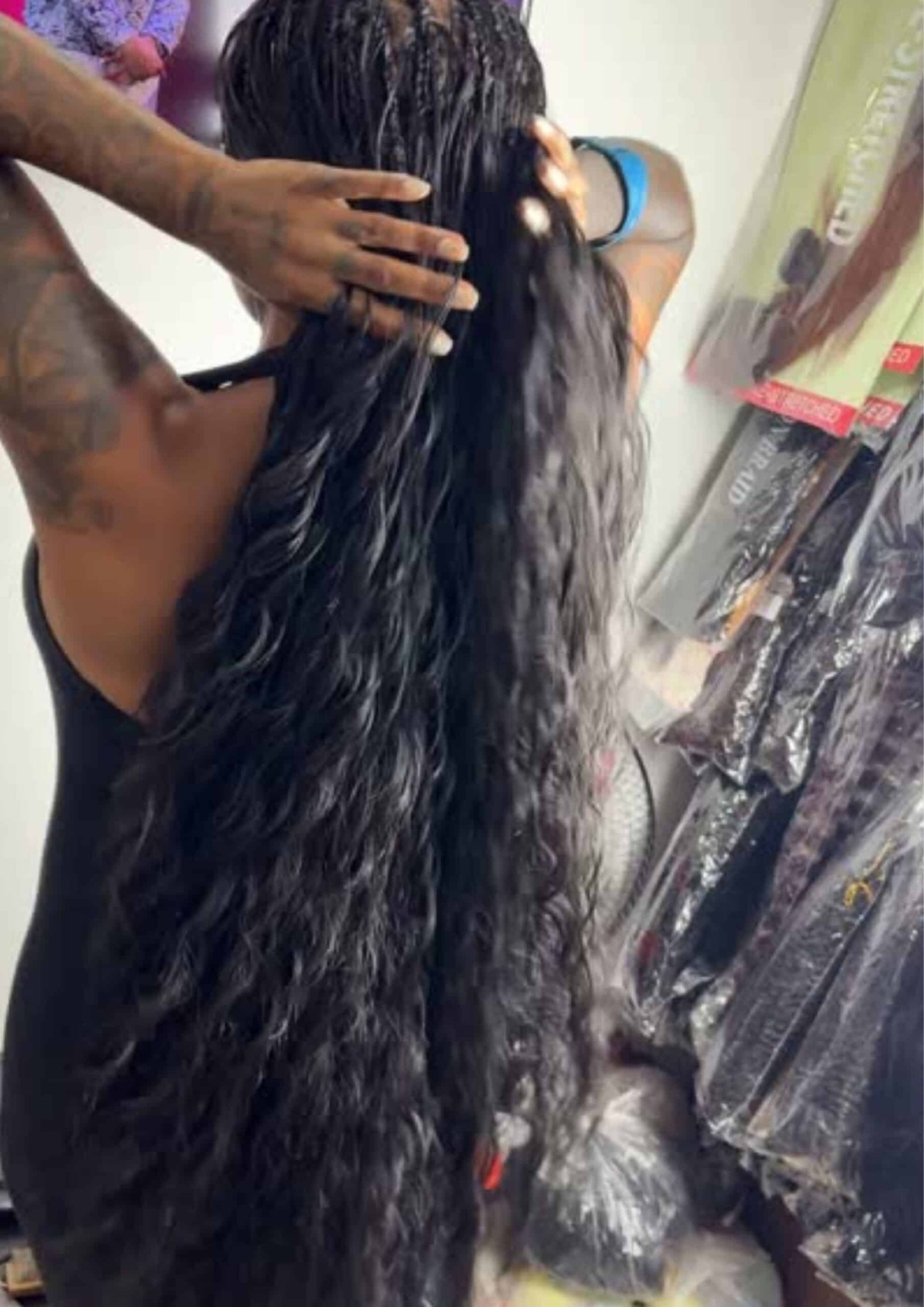 The entire process took about eight hours. All human hair, including the braid. She told me she hand selects the hair herself and sometimes goes directly to a factory in Vietnam. That mattered to me. I have a sensitive scalp, and I avoid harsh synthetic hair whenever possible.